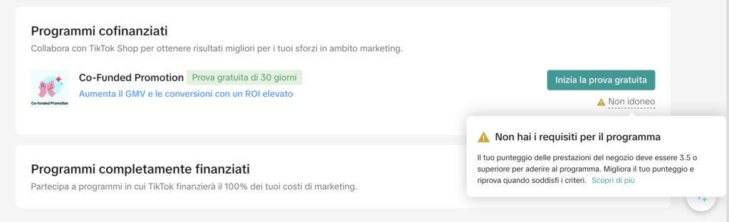 Ed è qui che arriva la parte più interessante, e forse più sottovalutata. Non tutti i seller possono accedere al Programma di Incentivi Smart. Dall’interno del Seller Center emerge chiaramente un requisito chiave: