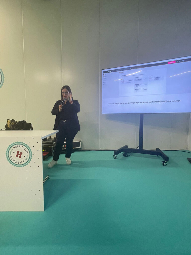 Nel 2023 sono intervenuta come speaker in occasione dell’edizione dell’evento fieristico dedicato al settore Ho.Re.Ca., tenutasi a Riva del Garda. Ho presentato un intervento focalizzato su come la piattaforma TikTok può supportare strutture ricettive e hospitality nel loro percorso digitale, tra contenuti, advertising e strategie di visibilità.